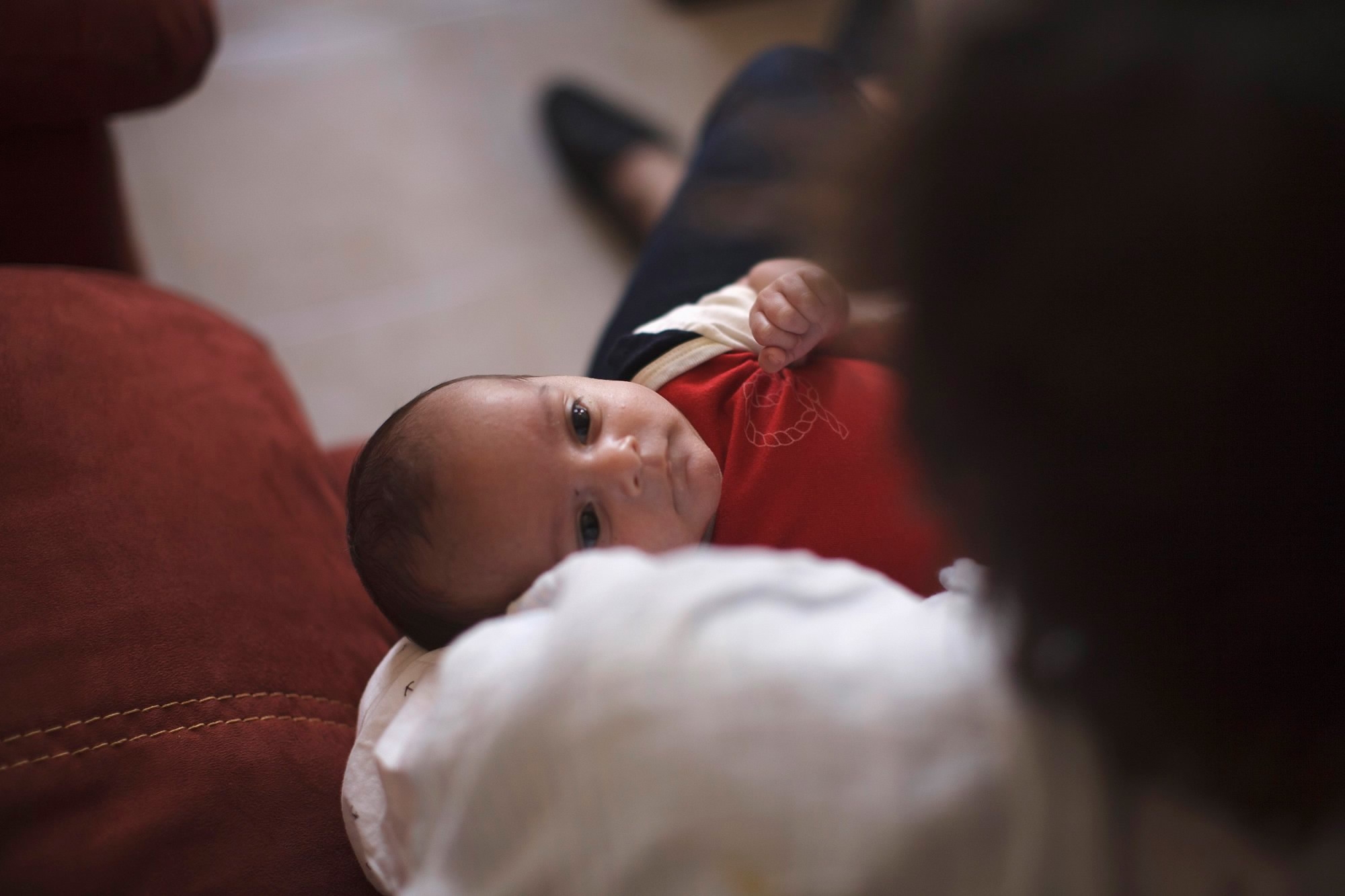 A newborn baby with a surrogate mother who carried the baby for a gay male couple. The baby was born in the Mexican state of Tabasco on January 6, 2015. /CFP Photo