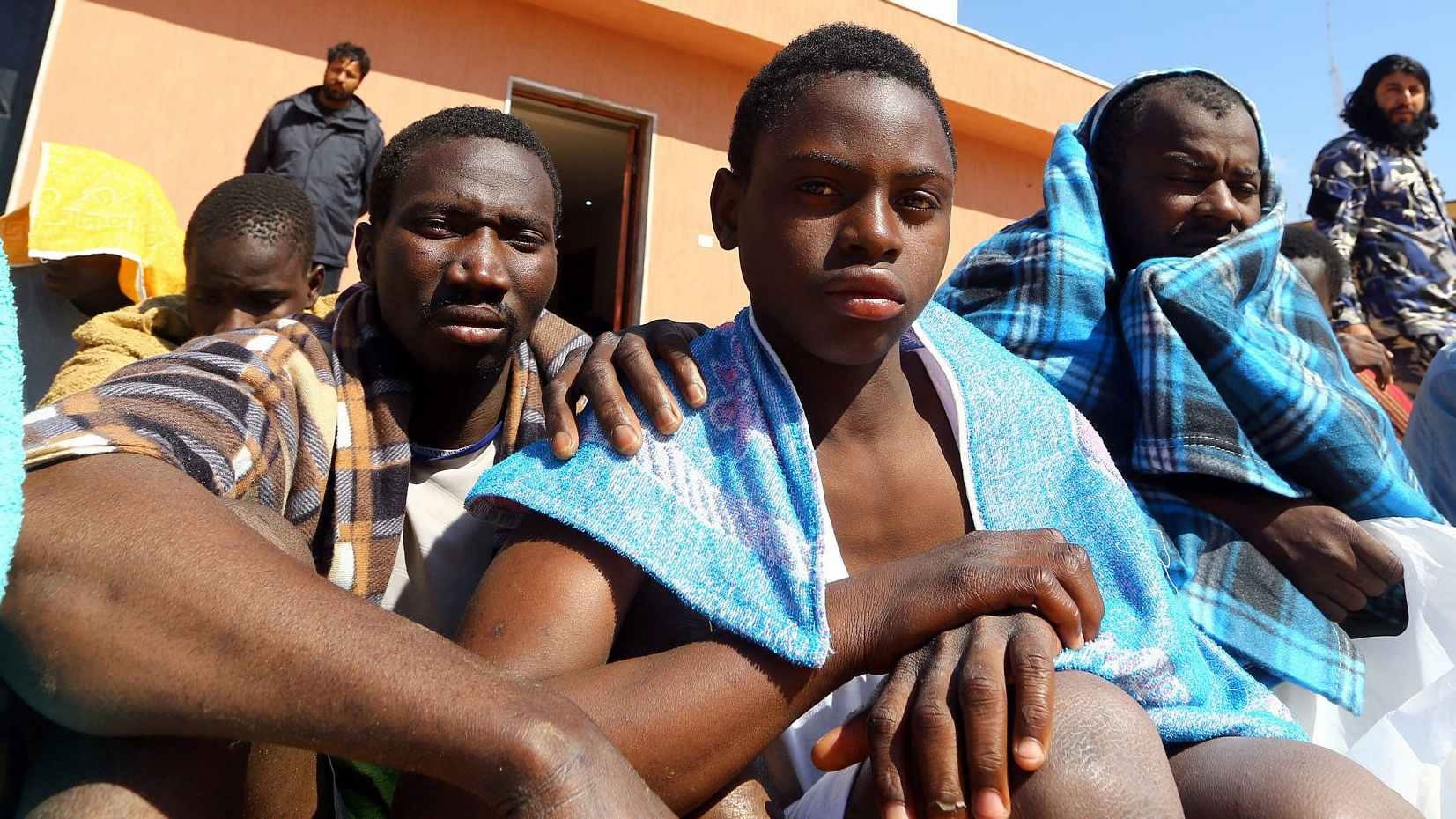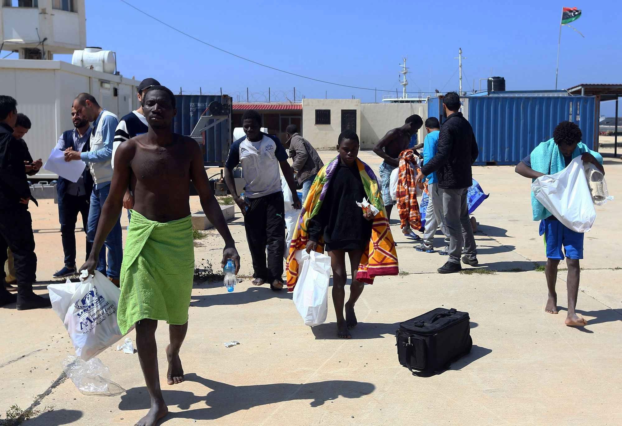 African migrants whose boat sank off the Libyan coast receive food and medical care upon their rescue at the Tripoli port ahead of their transfer to the Anti-Illegal Immigration Authority, in the Libyan capital on April 13, 2017. /VCG Photo