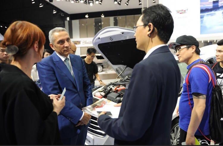 Morocco’s Minister of Industry, Commerce, Investment and Digital Economy, Moulay Hafid Elalamy (L2), attends the 2017 Shanghai Auto Show. / Moulay Hafid Elalamy's Facebook Photo