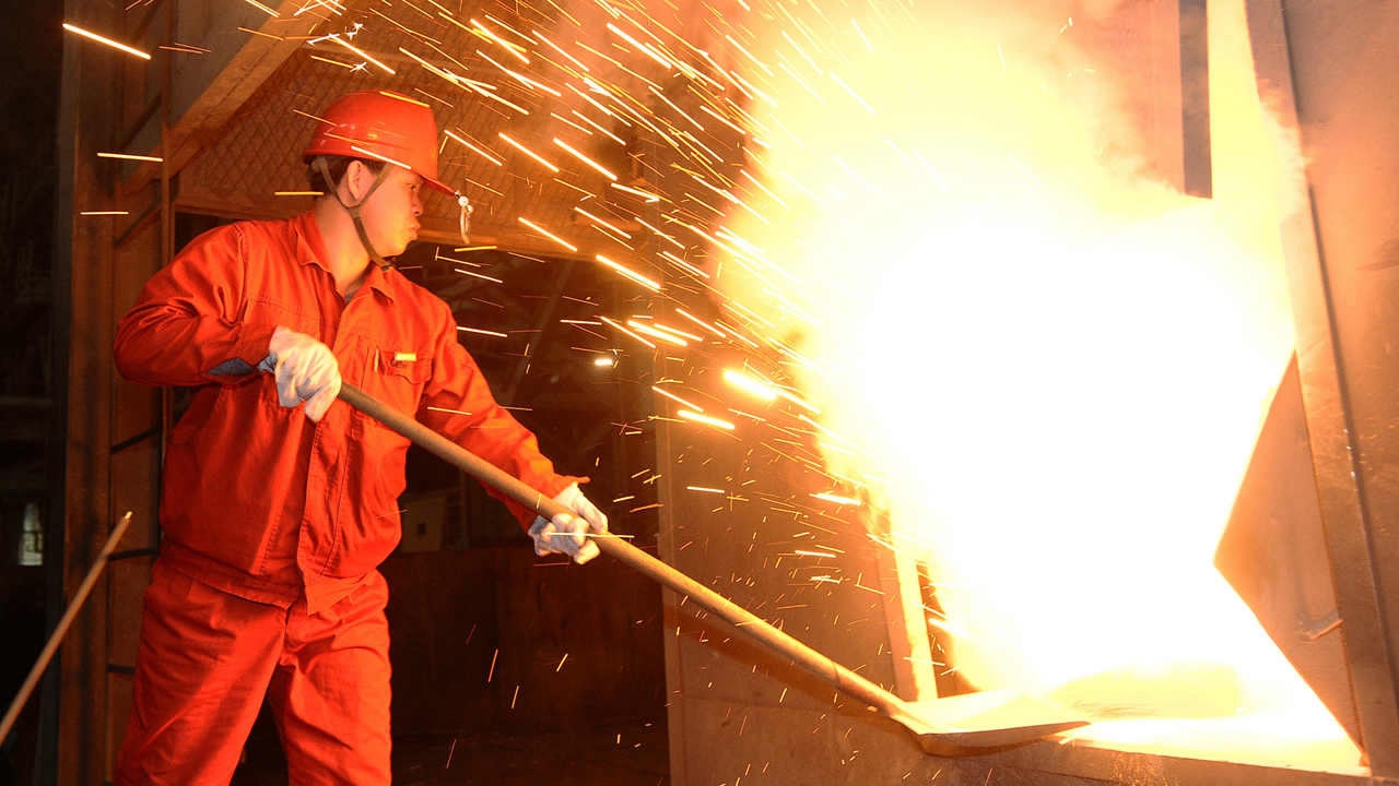 A worker is smelting steel in Dalian, Liaoning Province, March 27, 2017. /CFP Photo