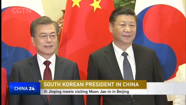 We begin here in Beijing, where Chinese President Xi Jinping has met with his South Korean counterpart, Moon Jae-in, who's on his first state-visit to China since taking office in May. After a welcoming ceremony at the Great Hall of the People, the two leaders held talks on ways to enhance their bilateral relations. President Xi noted that October's CPC Party Congress looked at ways in which China could collaborate with its neighbors, including South Korea; whilst he also welcomed the country's participation in the Belt & Road initiative. Moon, meanwhile, called for a "new start" in their bilateral relations, as well as joint efforts to peacefully resolve the Korean Peninsula nuclear crisis. They also discussed cooperation in areas such as technology, education, cultural exchanges and sport.