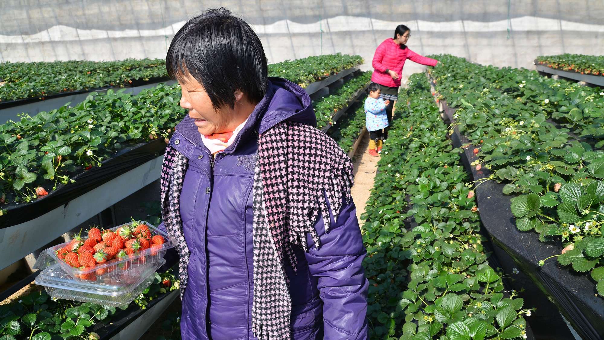 The Lunar New Year holiday is peak season for strawberry farmer An Jingwei from east China's Shandong Province. /CFP Photo