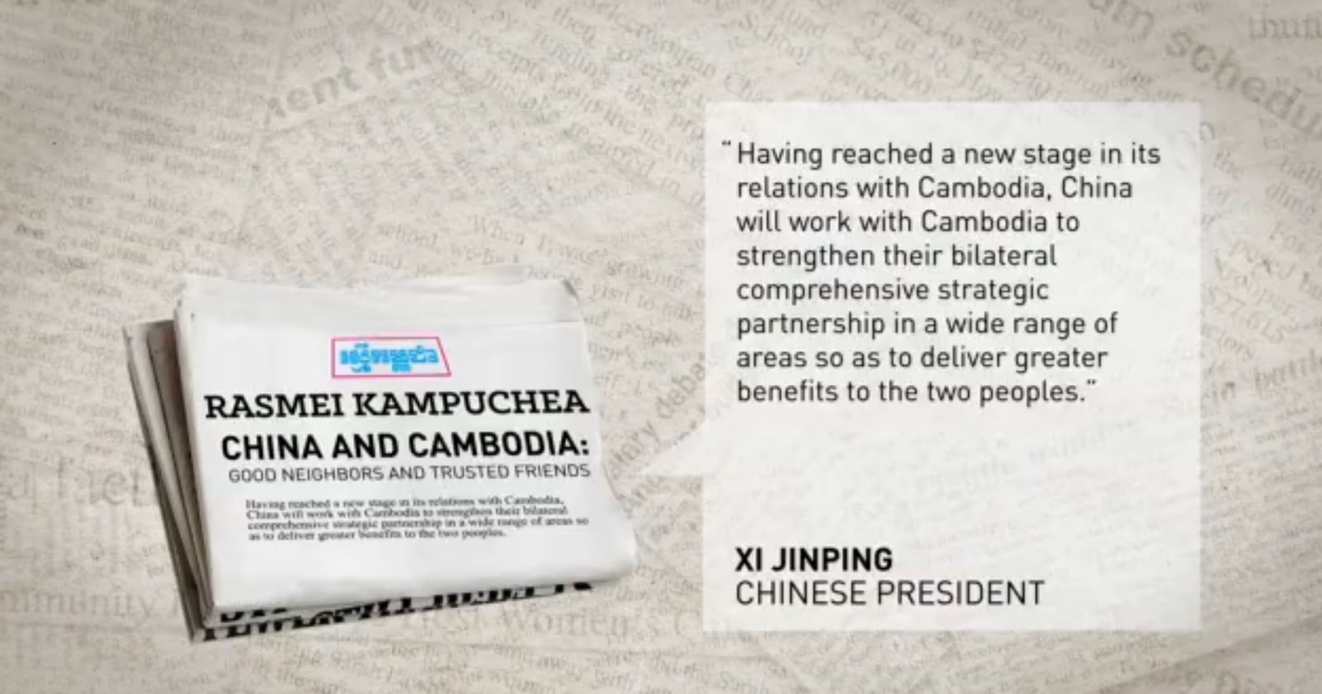 Phay Siphan, the spokesman for the Cambodia Council of Ministers, said Xi's article clearly reflects China's high attention to further deepening China-Cambodia relations and to supporting Cambodia in all circumstances.