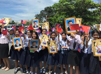 Cambodian people lined up to welcome Chinese President Xi Jinping's visit