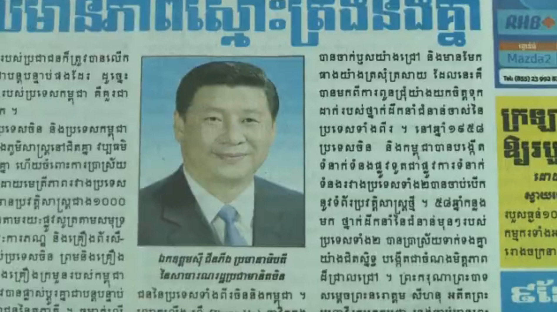 Xi's article titled "China and Cambodia: Good Neighbors and Trusted Friends" was published in the Rasmei Kampuchea Daily Newspaper on Wednesday.