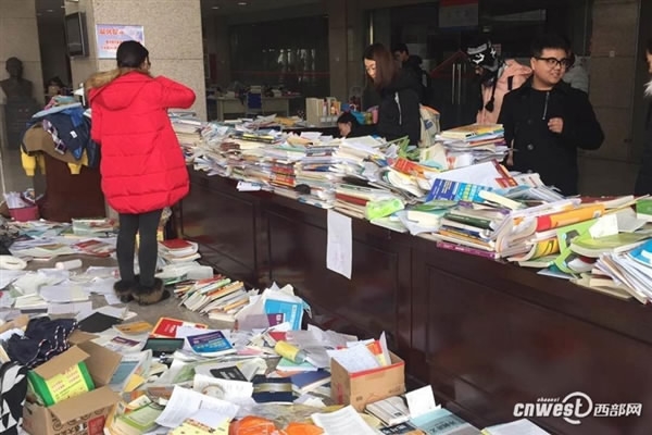 A university in Xi'an cleared out unattended books used to save seats, to discourage seat-hogging. / Cnwest Photo