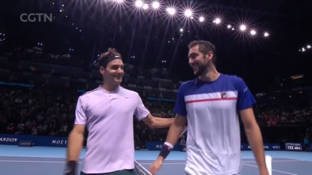 Early in the second, Cilic has break point as the 2014 US Open Champion looks to win his first match at this year's Finals, but instead Roger takes this point easily and later wins the set 6-4.