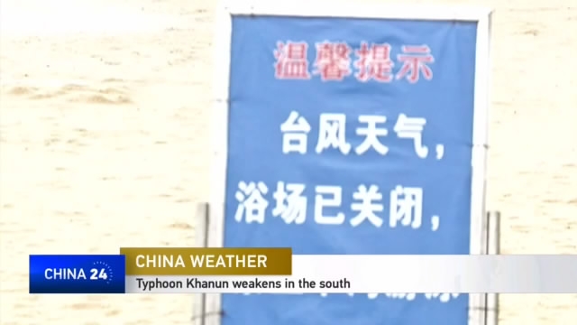 Now for an update on the 20th typhoon to hit China this year. Typhoon Khanun made landfall in Zhanjiang City in the souththern province of Guangdong early this morning. Local weather authorities say Khanun brought gales of up to over 100 kilometers per hour at its eye. After landfall, it weakened into a strong tropical storm. As of Monday afternoon, rain in southern and eastern China appeared to have almost stopped, and the wind died down. But in Taiwan, heavy rain since Friday has caused some highways to collapse. Railway and air service on the island has also been affected. Incomplete statistics from Taiwan's disaster emergency department indicate nearly five hundred mudslides reaching yellow or red alert.