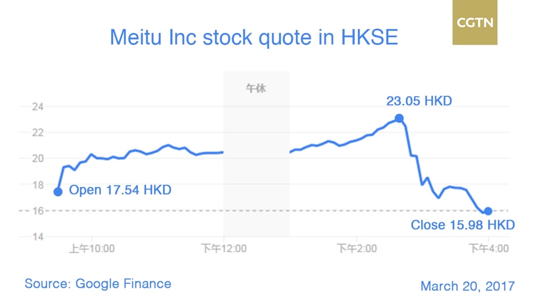 The stock quote of Meitu tumbled 11 percent following its rise up to 28 percent in early afternoon trading, eventually vaporizing about 30 billion yuan (4.3 billion US dollars) in shareholder value. It had already gone up for 11 consecutive trading days before it fell.