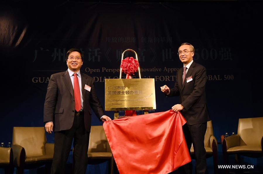 At a Fortune 500 forum on March 14, 2017, Guangzhou announced the opening of the city’s liaison offices in Boston and Silicon Valley, California. / Xinhua Photo