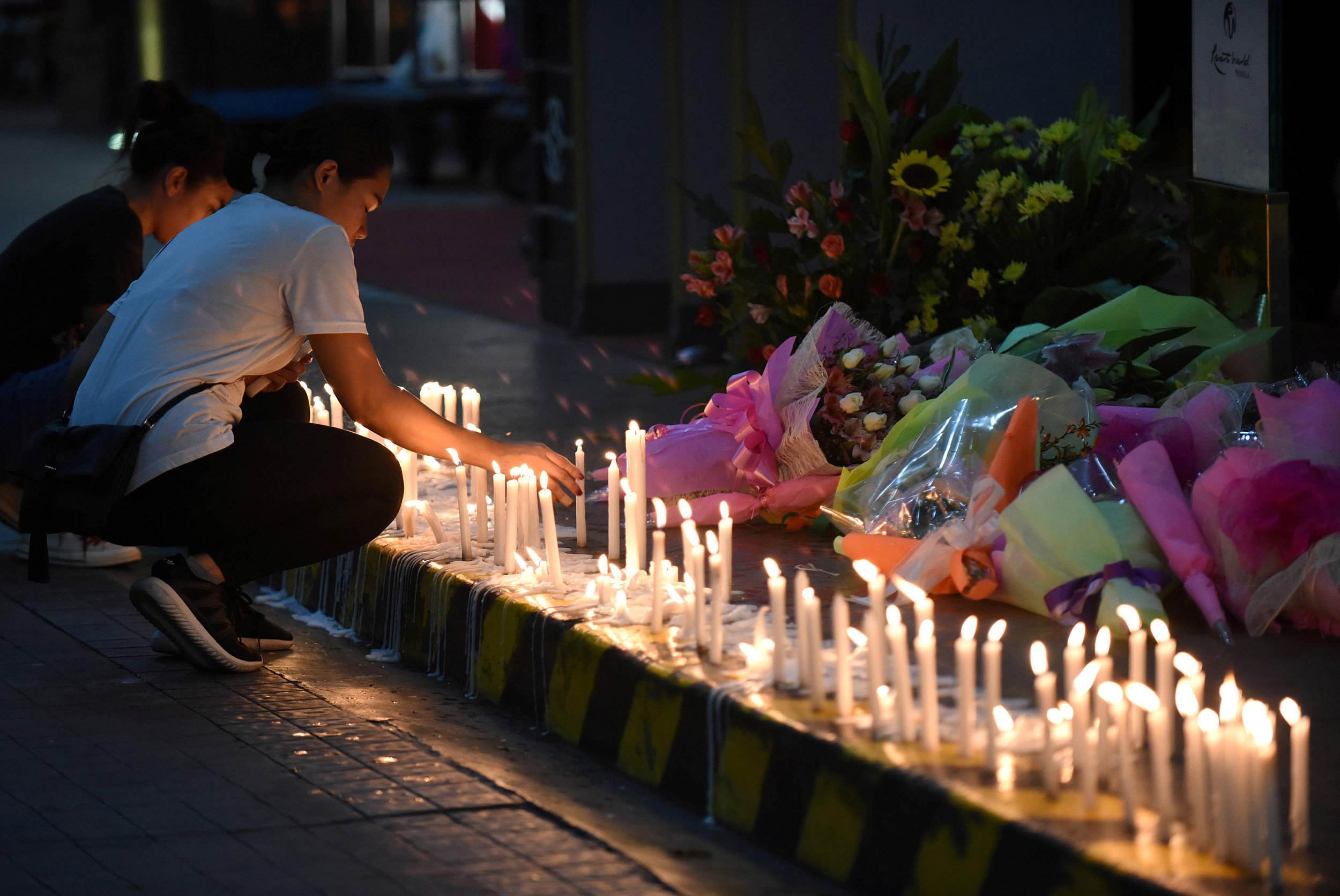 People light candles during a memorial for those killed in a casino fire in Manila, the Philippines, June 2, 2017. /VCG Photo