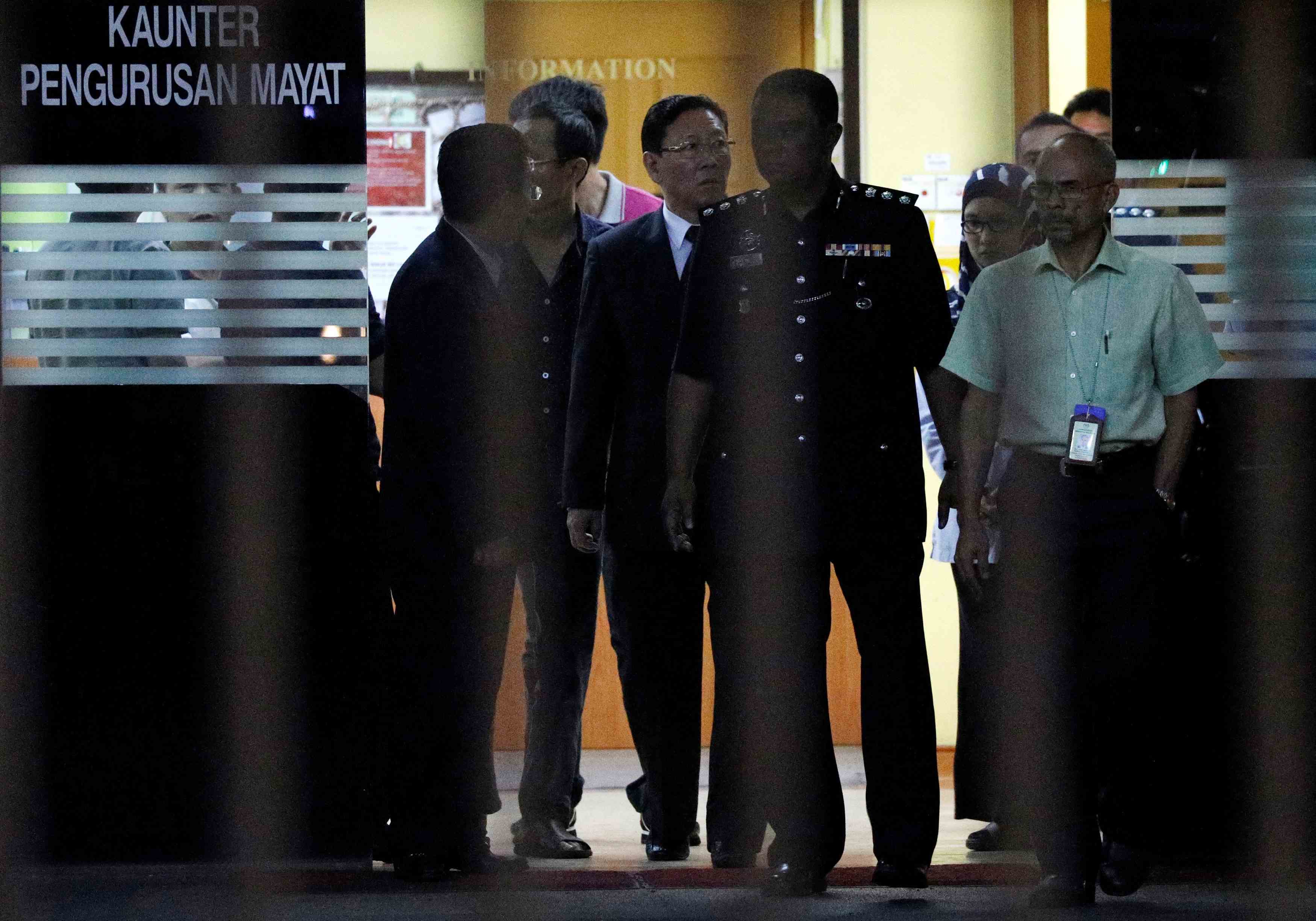 DPRK ambassador to Malaysia Kang Chol (C) leaves a morgue at Kuala Lumpur General Hospital where Kim Jong Nam's body is being held for an autopsy in the Malaysian capital, February 15, 2017. /Reuters Photo