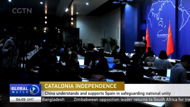 Foreign Ministry spokesperson Lu Kang made the remarks during a regular press conference, saying that China understands and supports the efforts made by the Spanish government to uphold national unity, ethnic solidarity and territorial integrity. Lu added that Beijing believes Madrid is capable of safeguarding the social order and civil rights in accordance with the law. The spokesperson also stressed that China and Spain will continue carrying out cooperation under the principle of respecting each other's sovereignty and territorial integrity as the two sides share friendly ties.