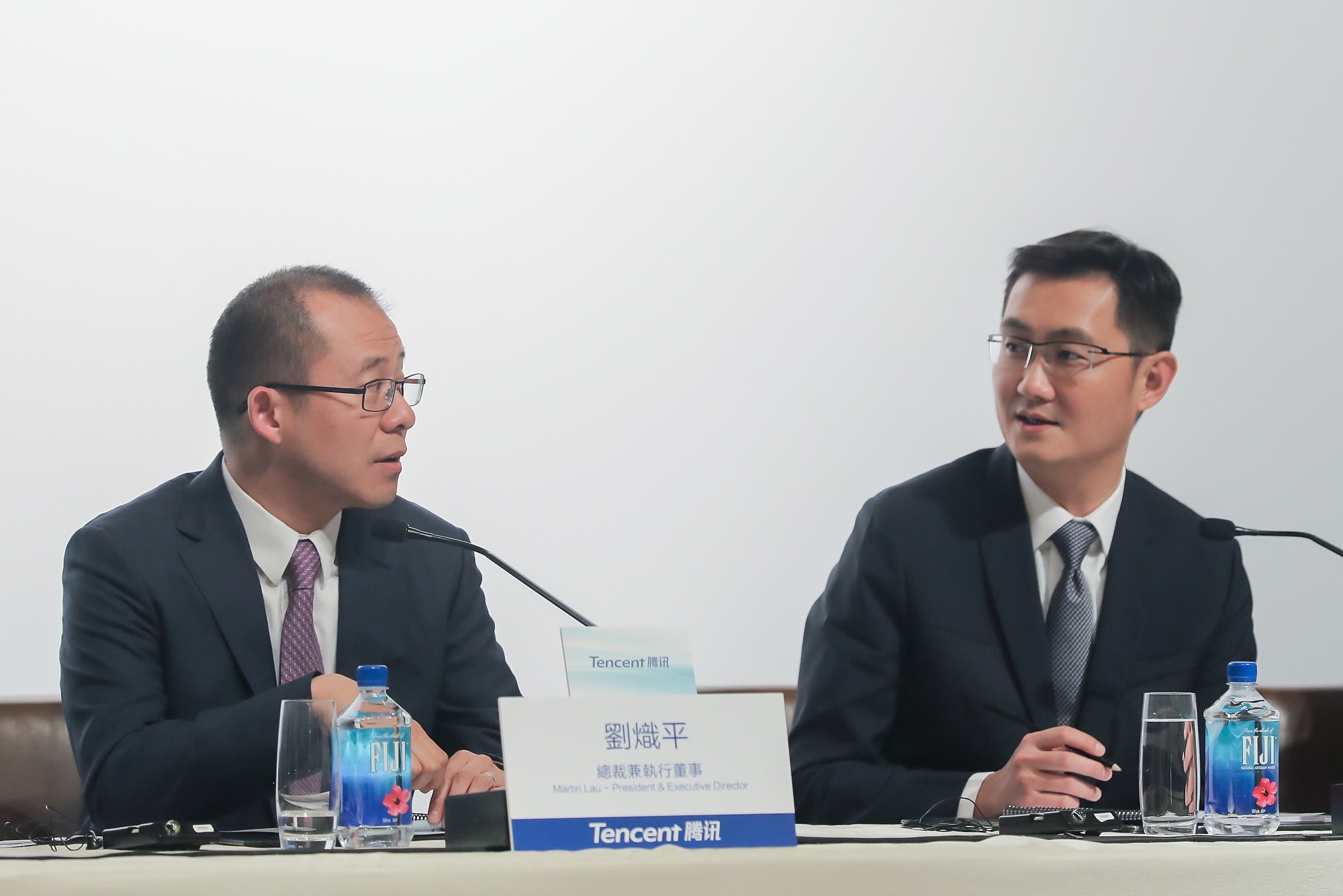 Tencent Holdings President Martin Lau (L) and CEO Ma Huateng (R)./VCG Photo