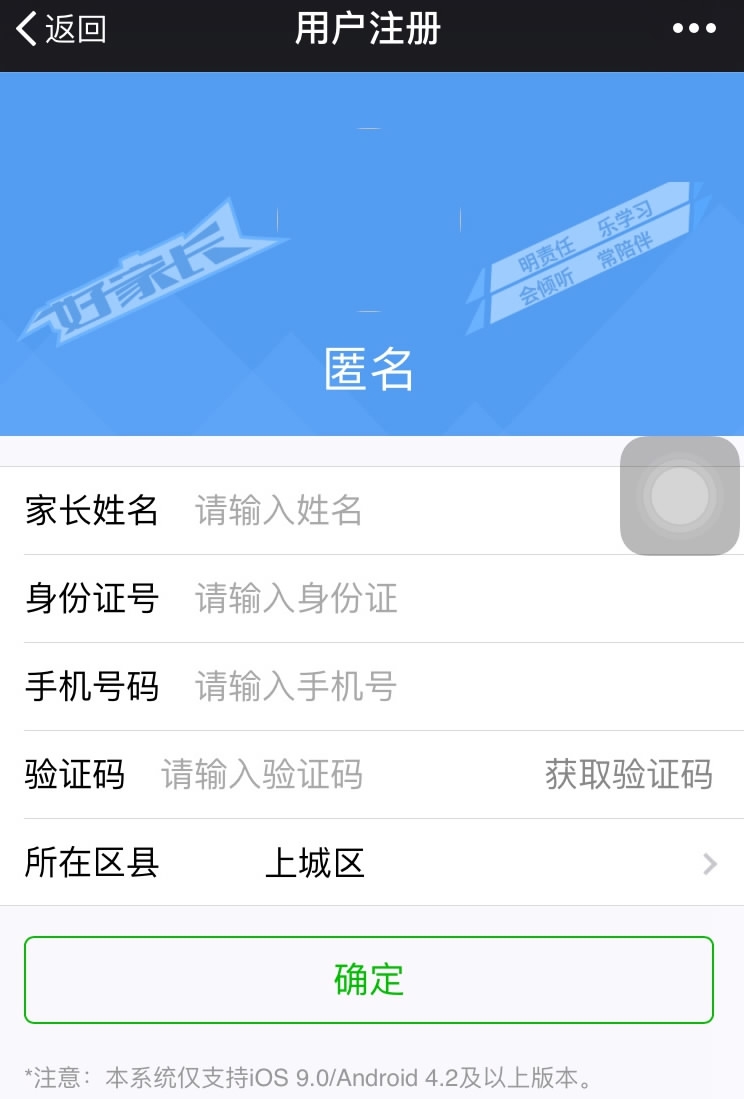 A screenshot of the platform's registration page on WeChat