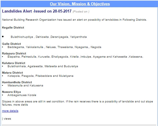 The Disaster Management Centre in Sri Lanka posted landslides alert in seven ares on Sunday afternoon. /Screenshot from the Disaster Management Centre's website