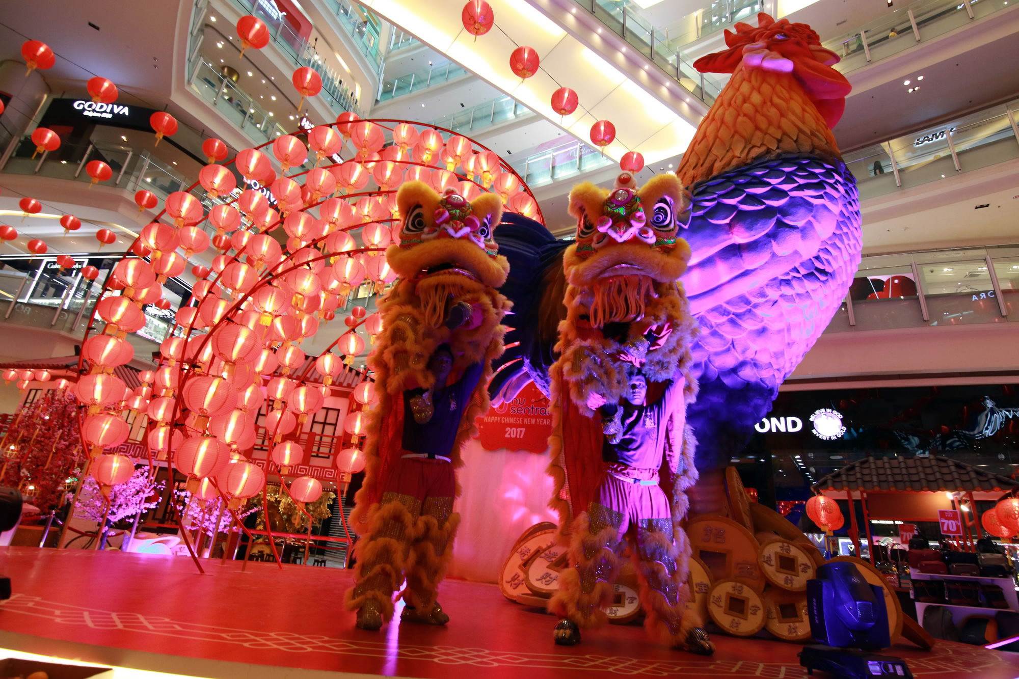 A lion dance performance at a mall on the first day of the Lunar New Year celebrations on January 28, 2017 in Kuala Lumpur, Malaysia. /CFP Photo