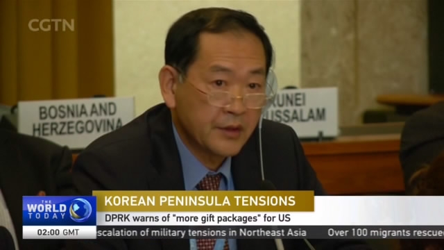 HAN TAE SONG, DPRK AMBASSADOR TO THE UN "The recent self-defensive measures by my country the DPRK are gift packages addressed to none other than the U.S. The U.S. will receive more gift packages from my country as long as it relies on reckless provocations and futile attempts to put pressure on the DPRK."