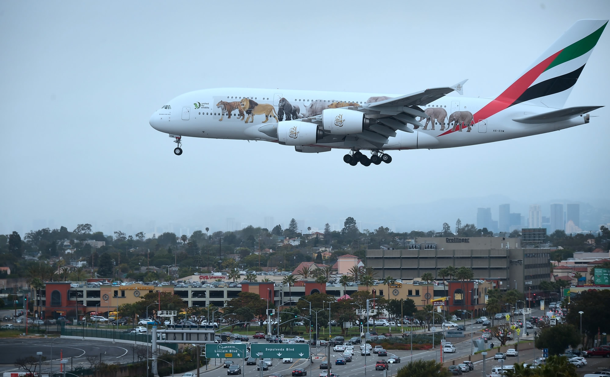 An Emirates Airlines aircraft from Dubai, comes in for a landing at Los Angeles International Airport on Mar 21, 2017. /CFP Photo