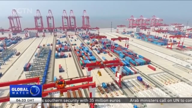 The fourth phase of Shanghai's Yangshan deep water port, the largest automated container terminal in the world, is starting trial operation today. Part of the Port of Shanghai is in Hangzhou Bay, the system can operate completely unmanned. ZHANG DAN has the story.
