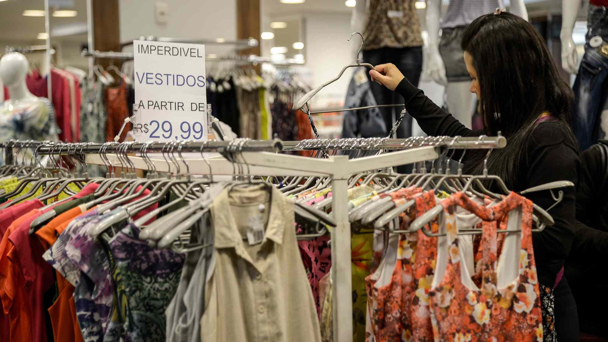 A woman shops at a clothing store in Sao Paulo, Brazil. /CFP Photo