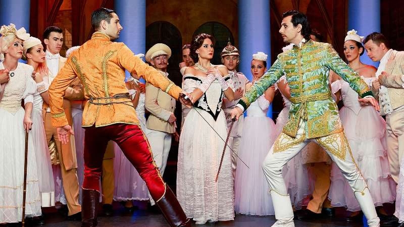 The performance fuses modern dance and traditional ballet, with the addition of court dances, European folk dance and Gypsy dances.