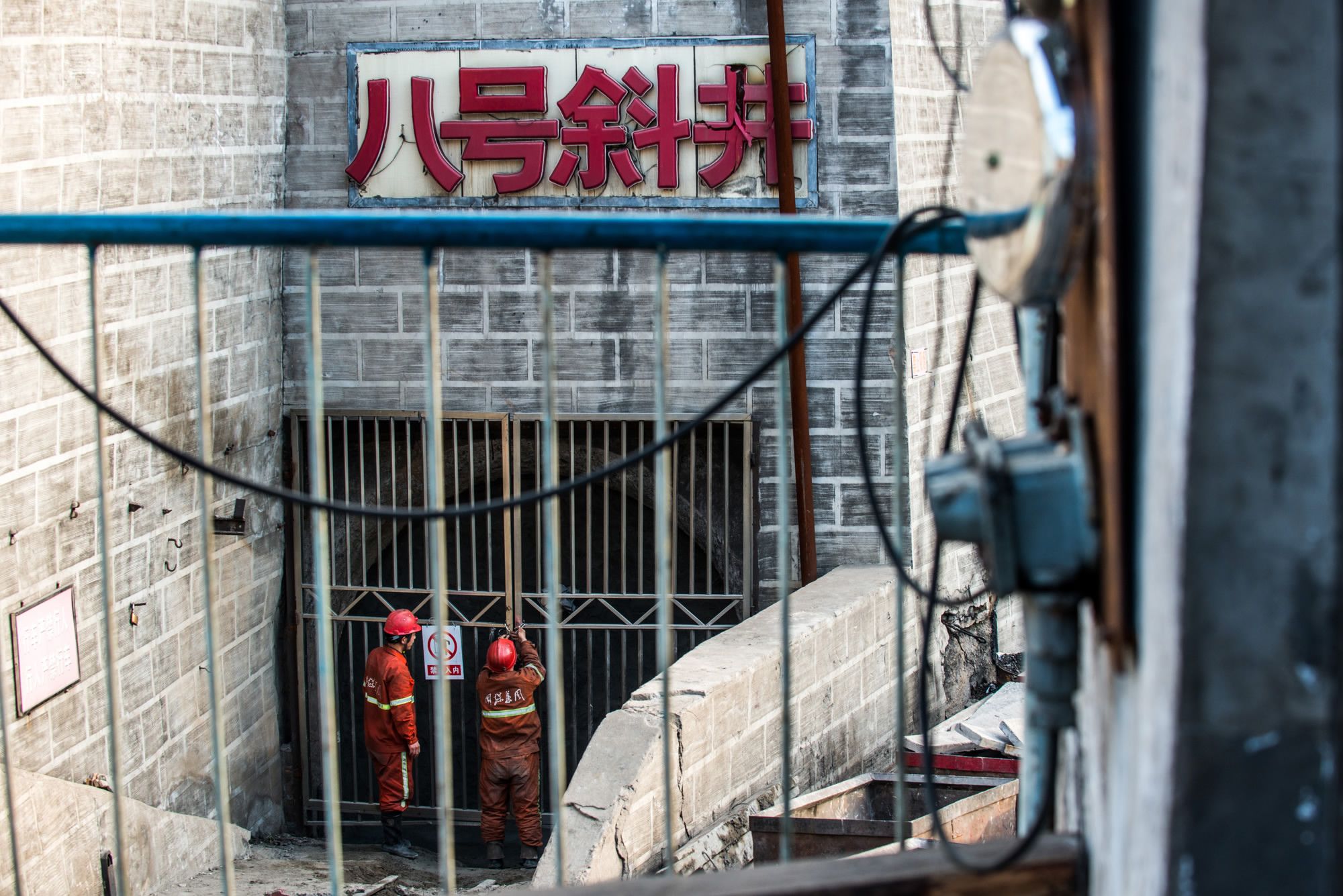 Workers stand in front of a coal mine in Shanxi Province. /CFP Photo