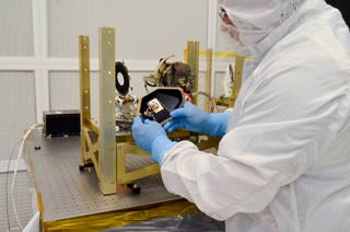 Engineers are currently testing optical module assembly for the LCRD mission. / NASA Photo