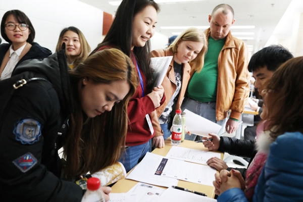International students attend a job fair at Beijing's Zhongguancun high-tech zone on March 23, 2017. /China Daily Photo