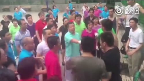 A basketball court in Luoyang, central China’s Henan Province turned into a "battlefield" after a fight broke out between a group of square dancing seniors and several young basketball players over who has the right to exercise first.
