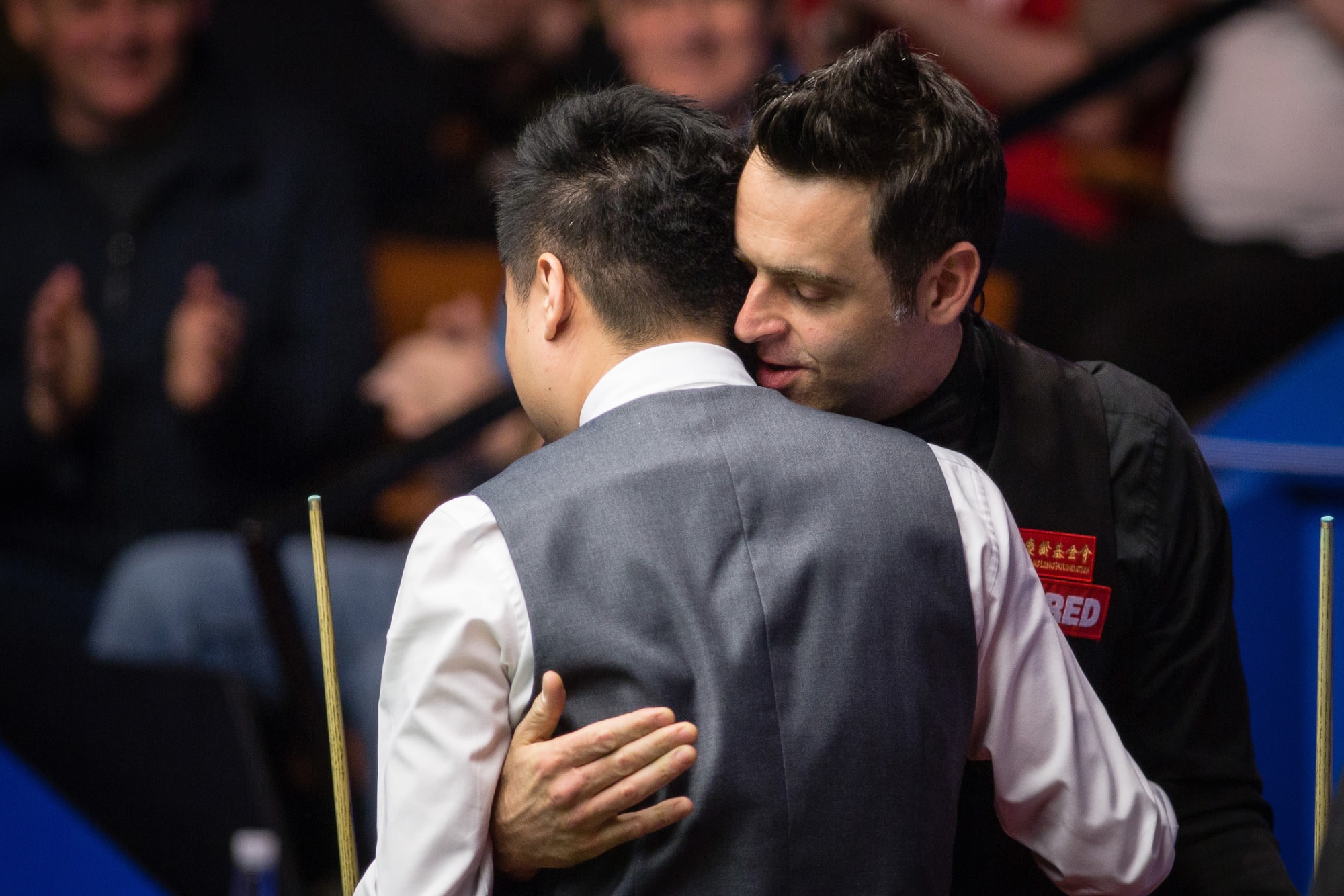 Ronnie O’Sullivan hugged Ding Junhui after losing the quarter-final. / VCG Photo