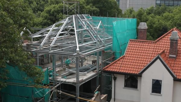 The destroyed building, located at No.888 Julu Road in Jing’an District in downtown Shanghai, was one of the 12 detached houses dotting the road since the 1930s. But passerby today will see green nets surrounding steel skeletons standing out like an eyesore among brick covered roofs.