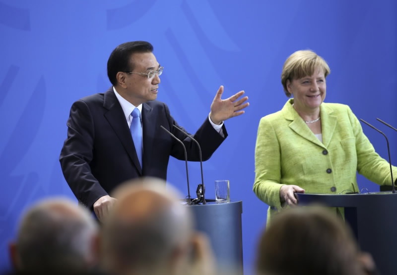 Chinese Premier Li Keqiang (L) and German Chancellor Angela Merkel attend a joint press conference in Berlin on June 1, 2017. /VCG Photo
