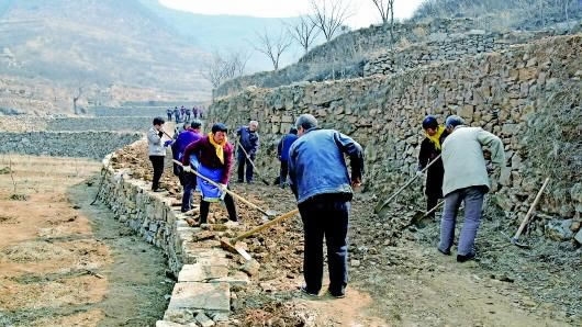 Villagers of Houchi Village, Handan City, Hebei Province are building road.