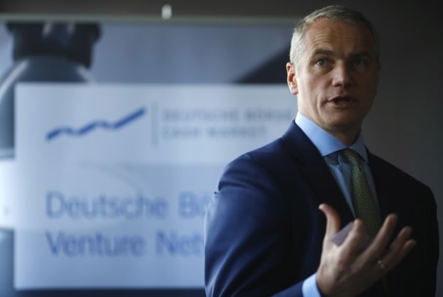 Carsten Kengeter, CEO of Deutsche Boerse talks to the media during the presentation of FinTec start-up facilities provided by Deutsche Boerse in Frankfurt, Germany, on February 24, 2016. / Reuters Photo