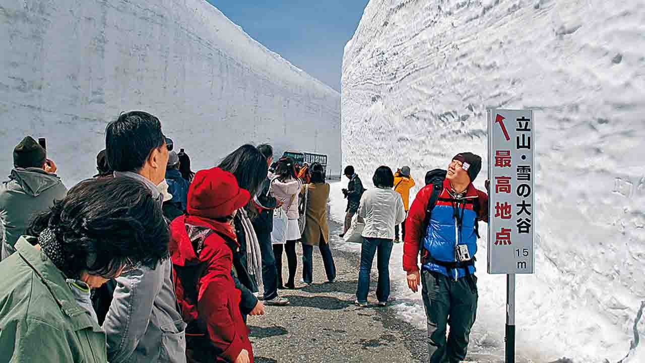 The Tateyama Kurobe Alpine Route partially opened to visitors on Monday. Along the route, tourists can travel between snow walls up to 15 meters high. The curving snowy corridor runs for about 500 meters.