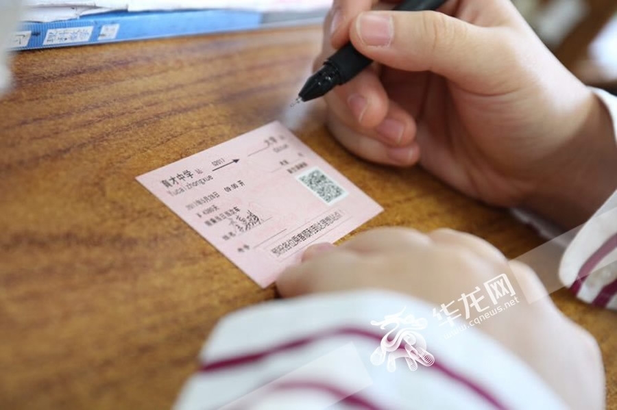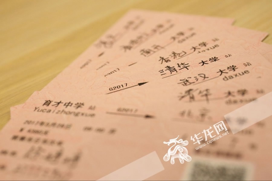 Designed in the style of a Chinese high-speed rail ticket, the pink cards feature the name of Yucai High School as the starting station, while the destination is left blank, allowing students to fill in their preferred choice of university.