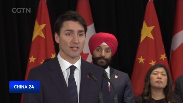 We start with Canadian Prime Minister Justin Trudeau's official trip to China. He met and dined with Chinese President Xi Jinping on Tuesday in Beijing with both leaders agreeing to pool their respective strengths together for the concrete benefit of people in both countries. And of course, trade is front and center during the prime minister's five-day stay, as a "comprehensive trade agreement" with China was laid on the table. Sun Ye has more.