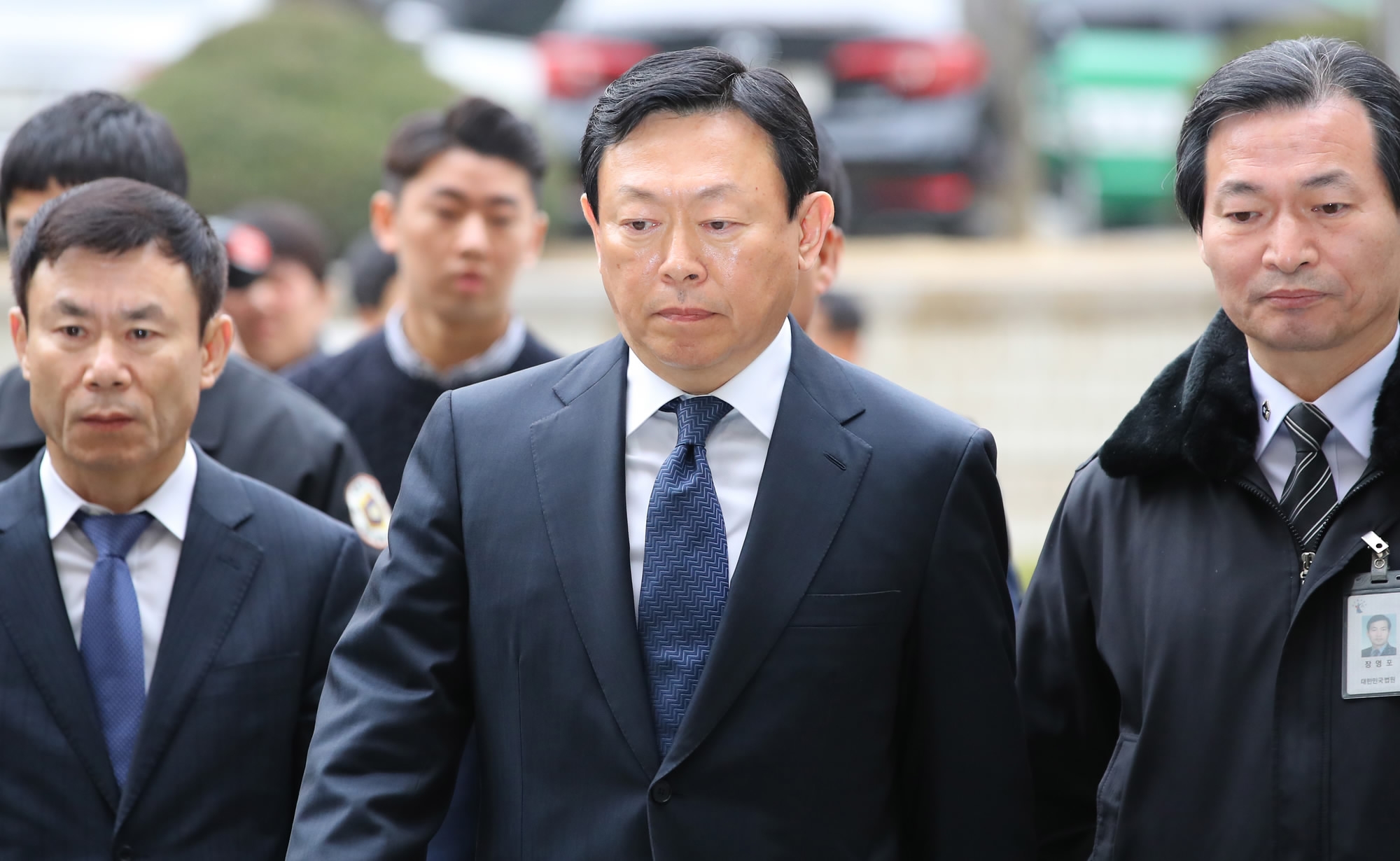 His son, group chairman Shin Dong-bin, has been charged with embezzlement of about 50.8 billion won ($45 million) and breach of trust over about 124.9 billion won, concerning suspected irregular payments to family members and unlawful support of group companies.