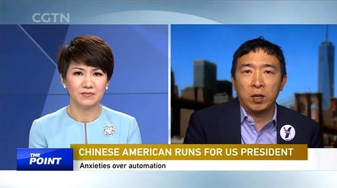 Yang Anze (R), a Chinese American businessman who has announced his intention of running for the 2020 Democratic Party’s US presidential bid./ CGTN Photo