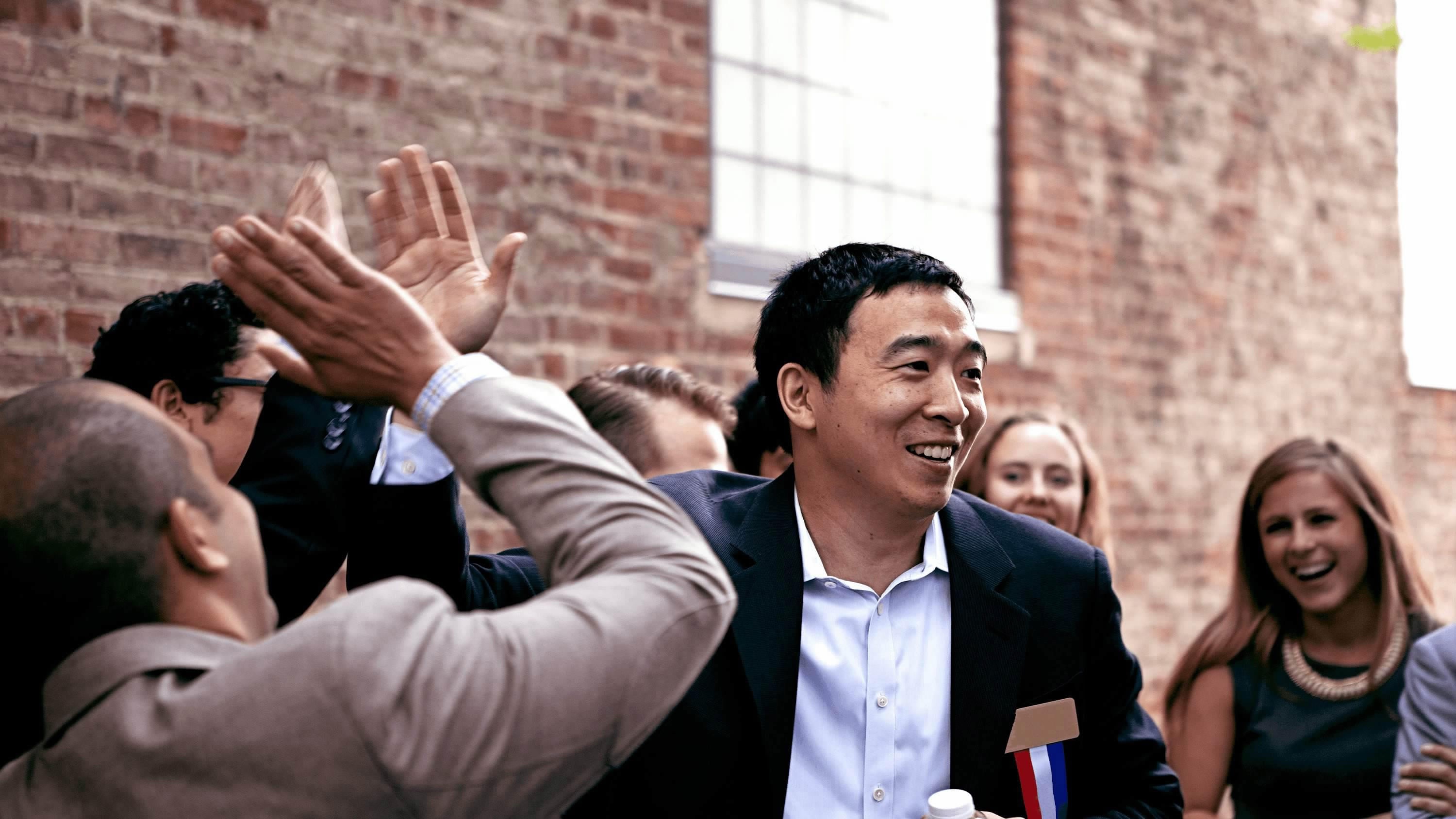 In contrast to Donald Trump’s slogan of “America First,” Yang is running on "Humanity First." He believes automation is responsible for big manufacturing job losses and it will expand its effect into white collar areas. “This is the greatest story that is not being told in the United States, and we need to get our arms around it quickly,” said Yang.