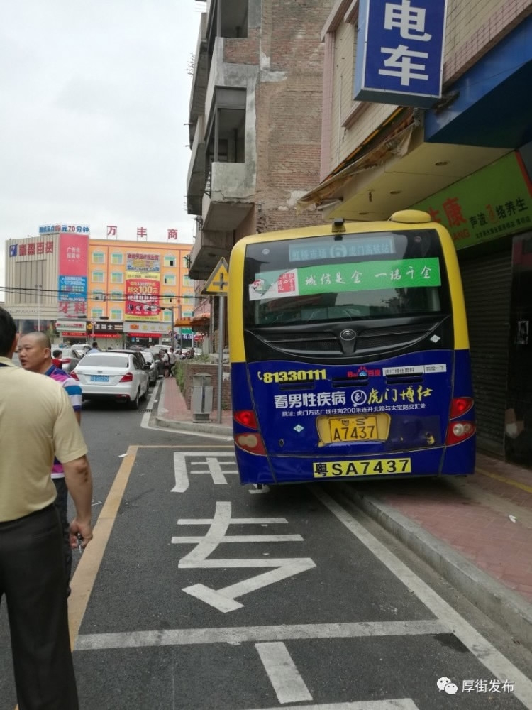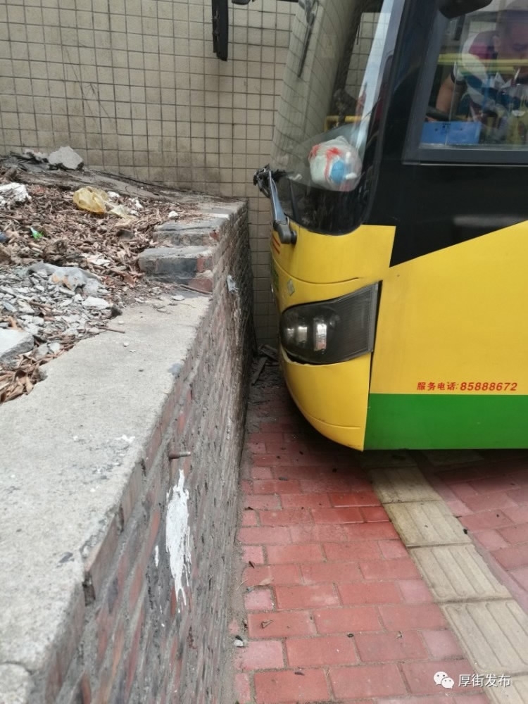 On Monday morning, around 8:30 a.m. local time, a bus in south China's Guangdong Province hit a residential building, but caused no harm to any residents.