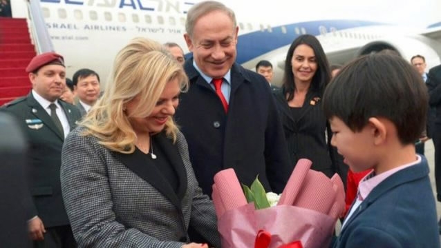 Israeli Prime Minister Benjamin Netanyahu and his wife Sara Netanyahu arrive in Beijing, China on March 19, 2017. /Photo by Israeli Embassy in China