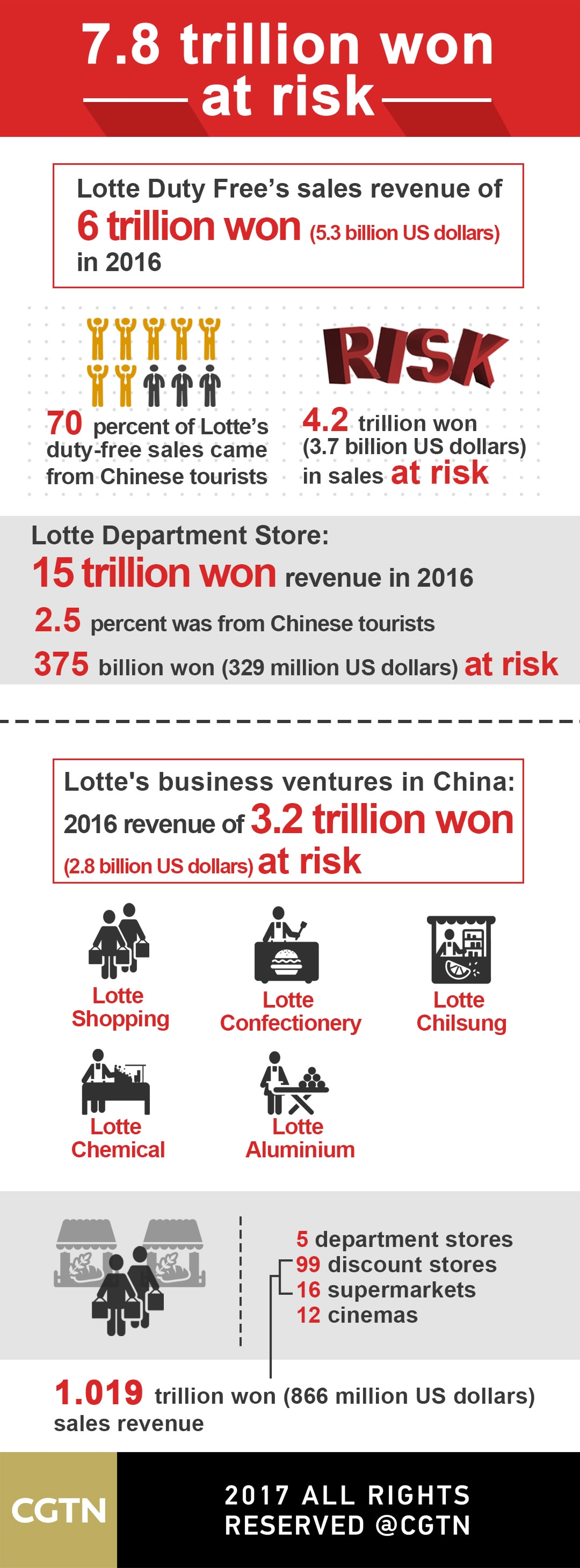As a direct result of Lotte's decision to allow THAAD to be deployed on its land, it is estimated that a Chinese boycott of its products could put business operations worth around 7.8 trillion won (6.8 billion US dollars) in jeopardy, according to reports from Korea Bizwire.