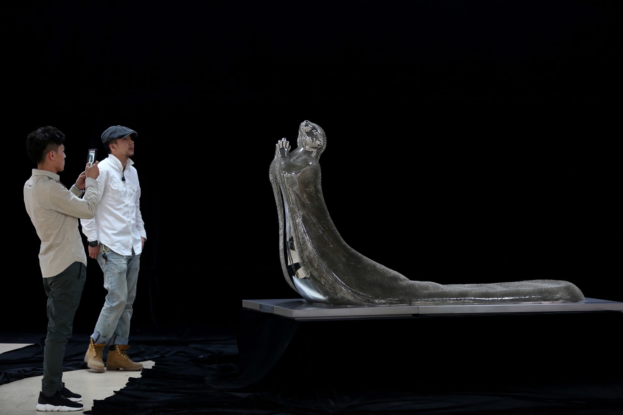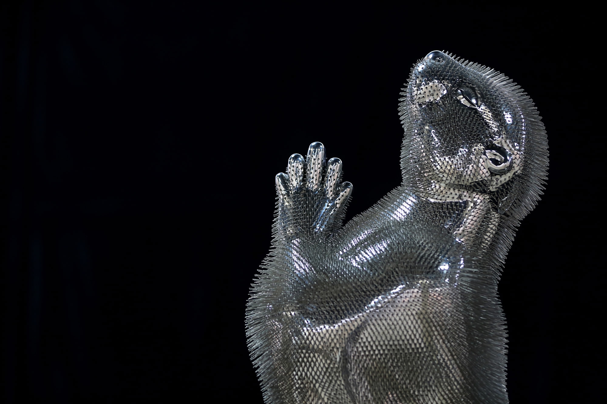 It took Xie a year to create this otter with 300,000 needles. The statue stands at a height of two meters and has a length of almost three meters. /CFP Photo