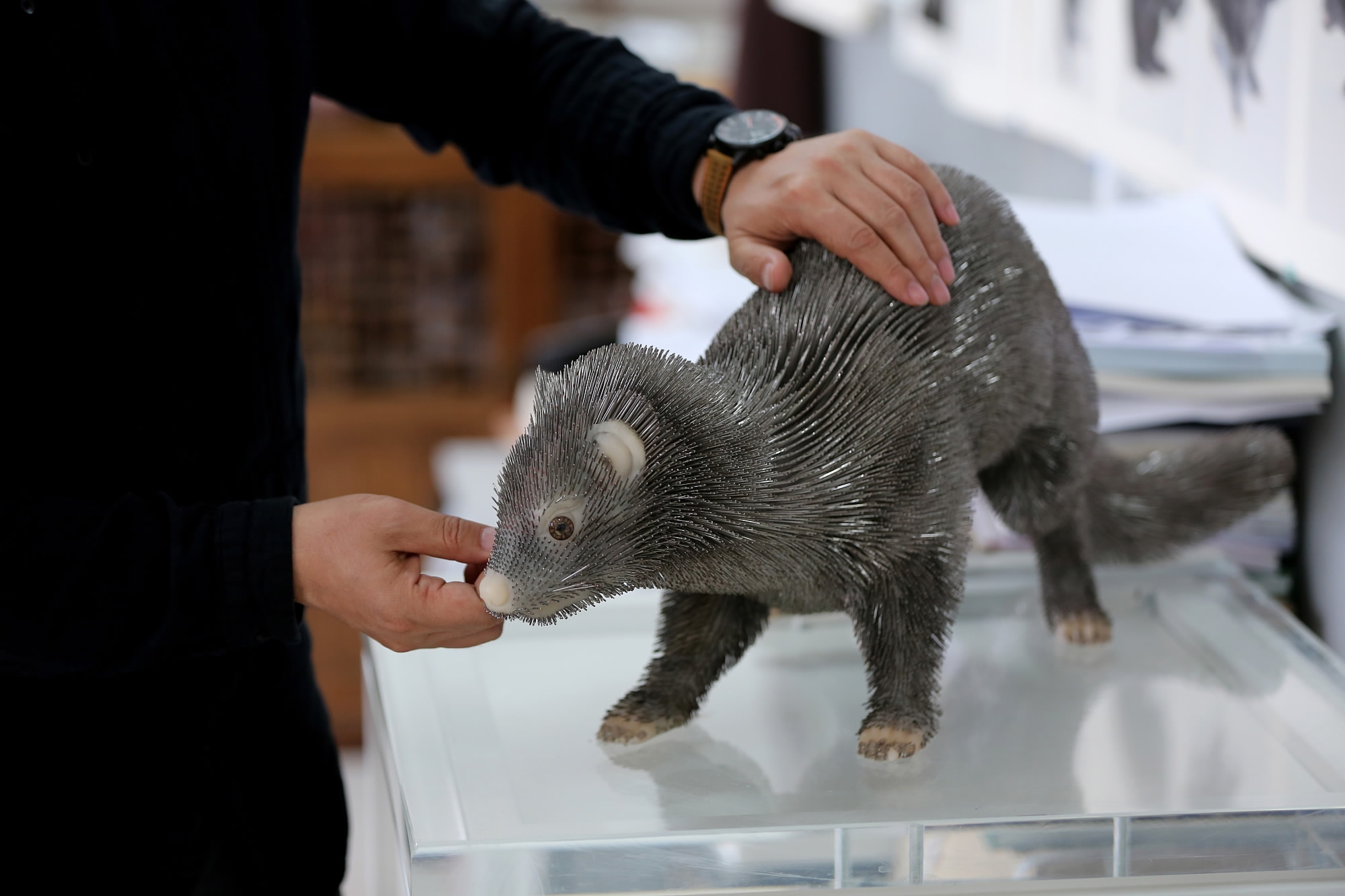 Xie Yong, Dean of Shenyang University’s Art School in northeast China, has made 15 intricate art works covered in one million needles to call for awareness of animal protection, with the theme of saying “no” to fur. /CFP Photo