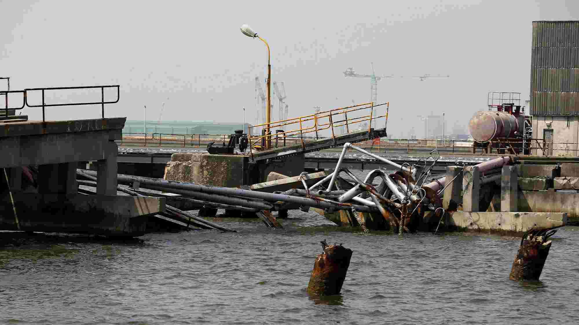 An oil discharge facility which was used to transfer imported oil is damaged by militants from the Niger delta, in Lagos, Nigeria. /VCG Photo