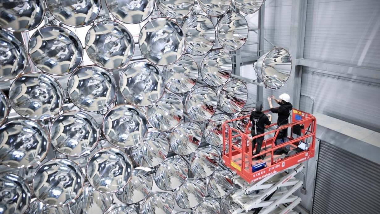Scientists at the German Aerospace Center flipped the switch on the 'world's largest artificial sun,' called the 'Synlight'. / DLR Photo