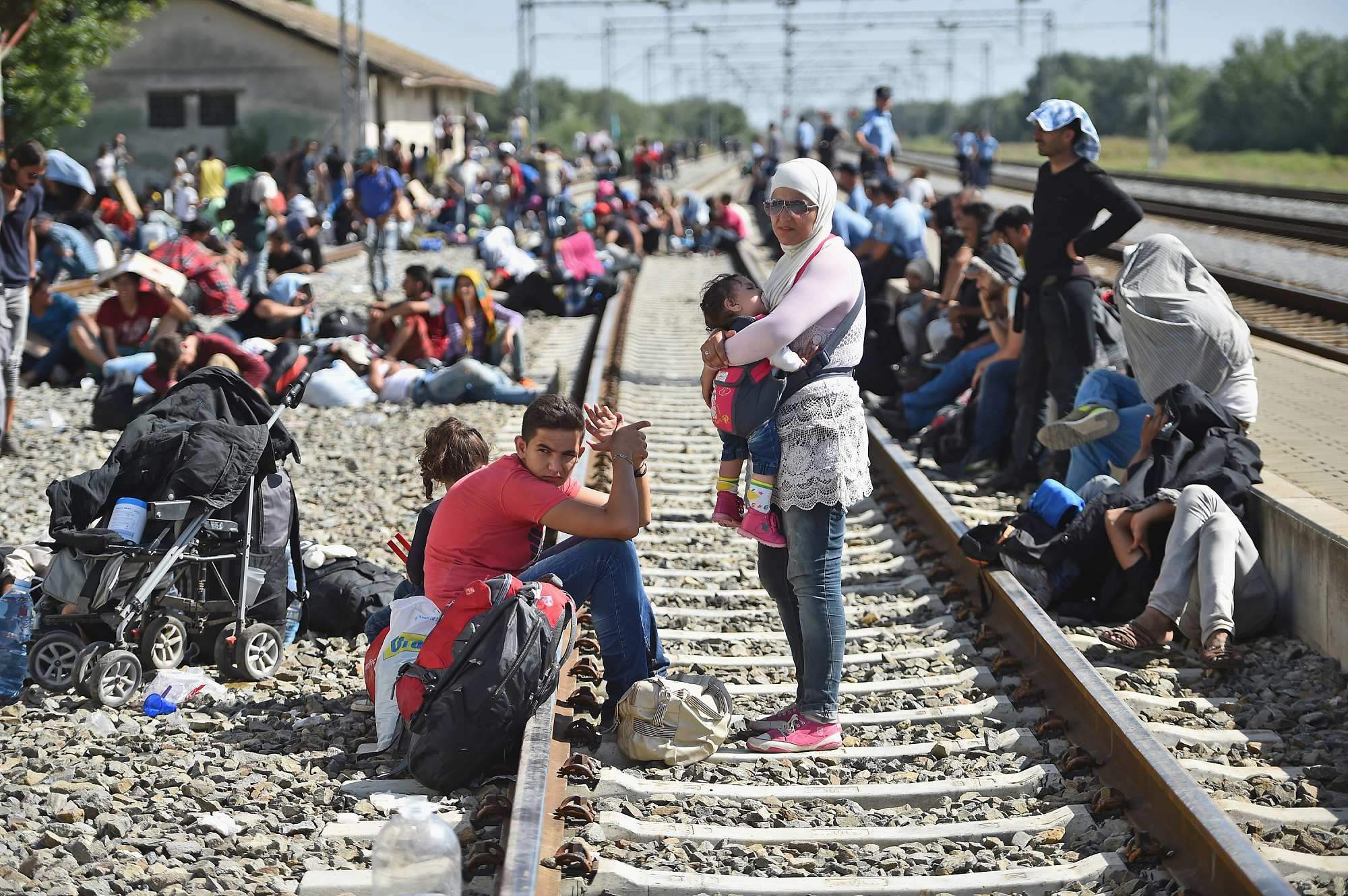 Hundreds of migrants waited at Tovarnik station for a train to take them to Zagreb on September 17, 2015 in Tovarnik, Croatia. Migrants crossed into Croatia from Serbia two days after Hungary sealed its border with Serbia. The majority of them wanted to reach Germany. /VCG Photo
