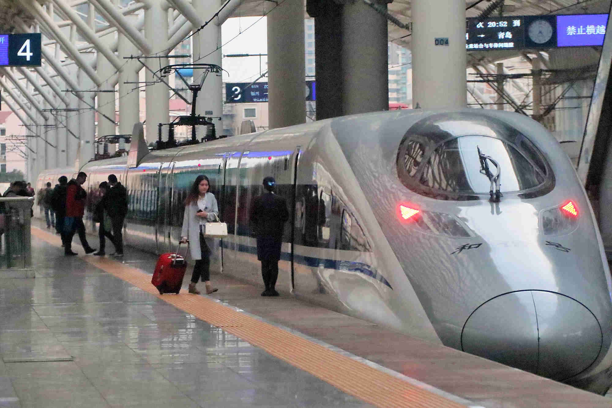 A train stops at Qingdao Railway Station before its departure to Rongcheng City in east China's Shandong Province. /VCG Photo